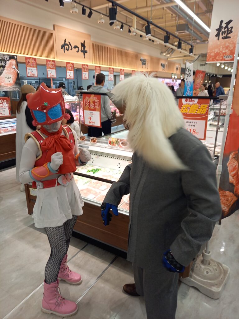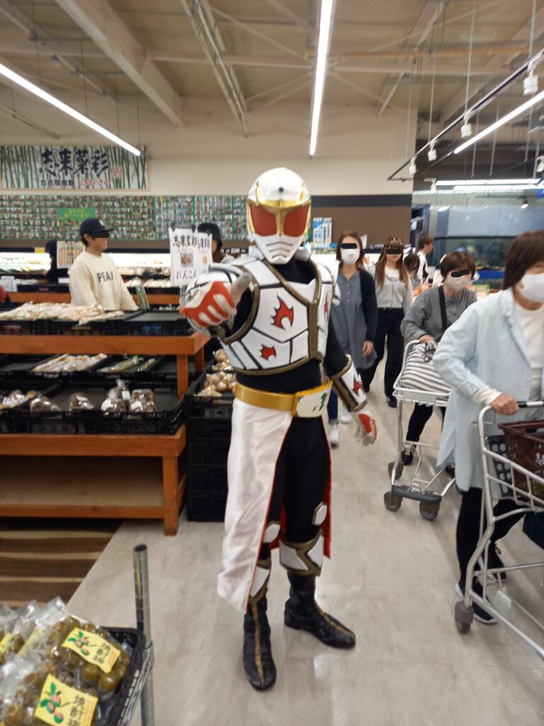 志来菜彩の店内を「ばってん軍団」も一緒にパトロールです