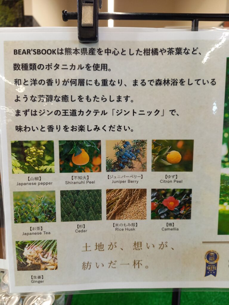 2025年11月04日 「BEAR’S BOOK」 GIN お知らせ 熊本の逸品食材 銘菓・酒・お土産 「先生! JIN、このJINは、BEAR’S BOOKにございます!」 そうそう これこれ 熊本県産のボタニカルを使った 熊本県発の「GIN」(※NOT「JIN」) 「BEAR’S BOOK」 球磨焼酎を造る高橋酒造の 若き醸造家たち 「こだわり」と五感を刺激する「遊び」をコンセプトとした蒸留酒GIN 志来菜彩に登場です!! ジンのつづりは正しくは「GIN」 「JIN」は南方先生で「仁」 とくに関係ないですけど おまちしてます!! 一覧へ戻る 前の記事へ 次の記事へ