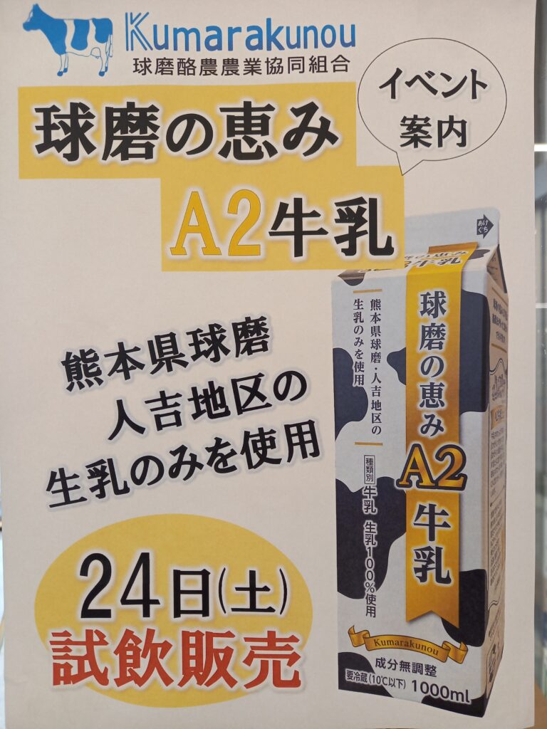 球磨の恵み「A2牛乳」をご用意しておまちしてます!!・・・・・・・