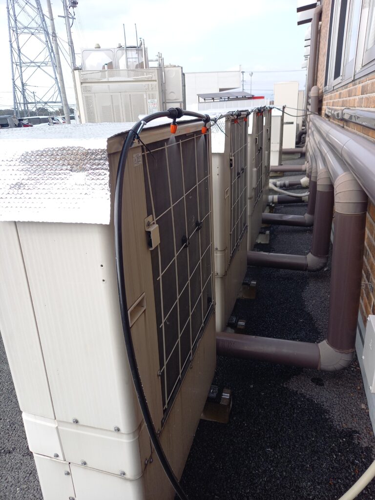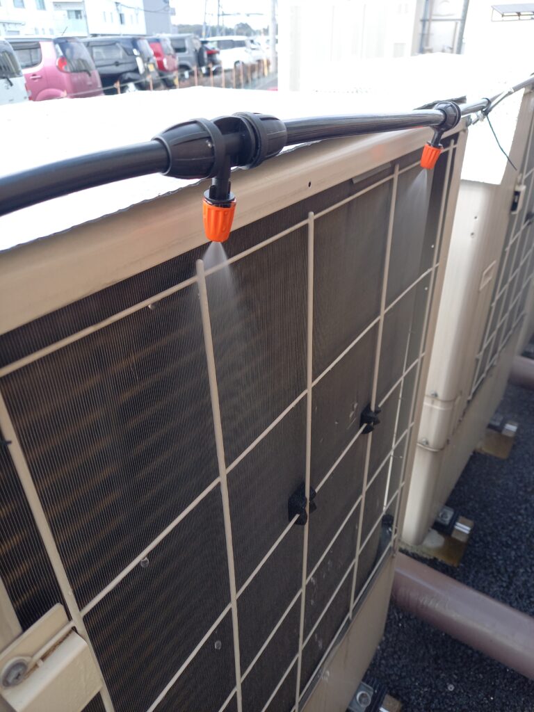 室外機の冷却フィンを直接冷やすのです!