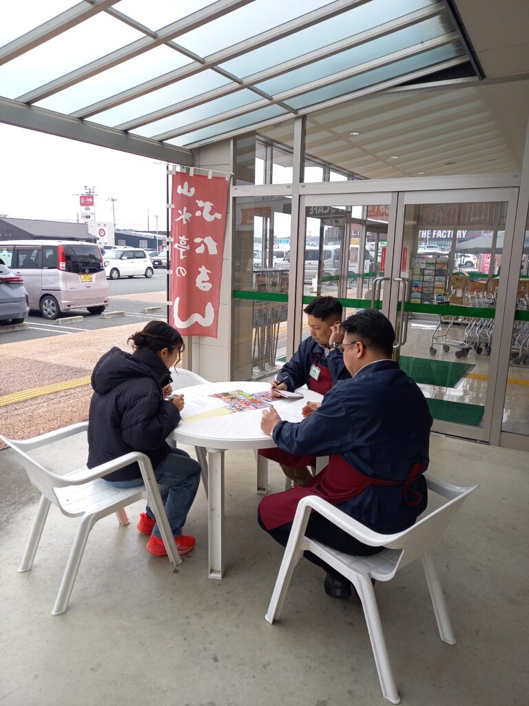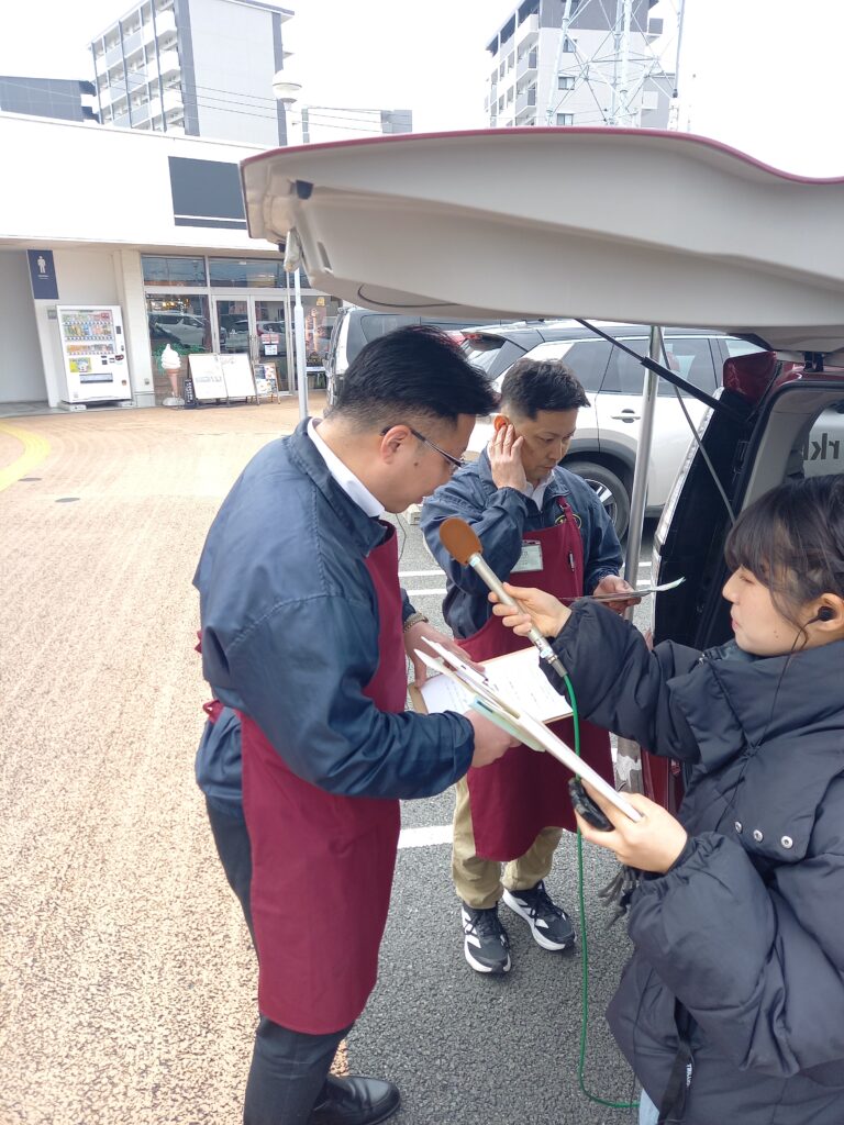 2026年02月06日 ミミー号がやってきた! お知らせ 2/6からの広告に合わせるかのように 熊本のラジオ局RKKから 「ミミー号」がやってきました!! カワイイ「ミミーキャスター」と 志来菜彩のスタッフが綿密な打ち合わせをします! まじめに打ち合わせてます そしていよいよ本番! 生放送一発勝負です!! ミミーキャスターさん 甘いイチゴが大好きです! 綿密な打ち合わせのとおり カンペをしっかりと読みます! 読みます! たのしい放送でしたね!! 週末も志来菜彩でおまちしてます!! 一覧へ戻る 前の記事へ 次の記事へ