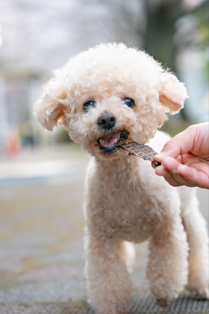 どんなジャーキーやおやつでも飛びつきますよね