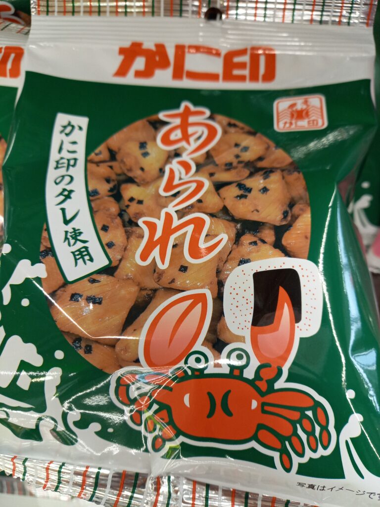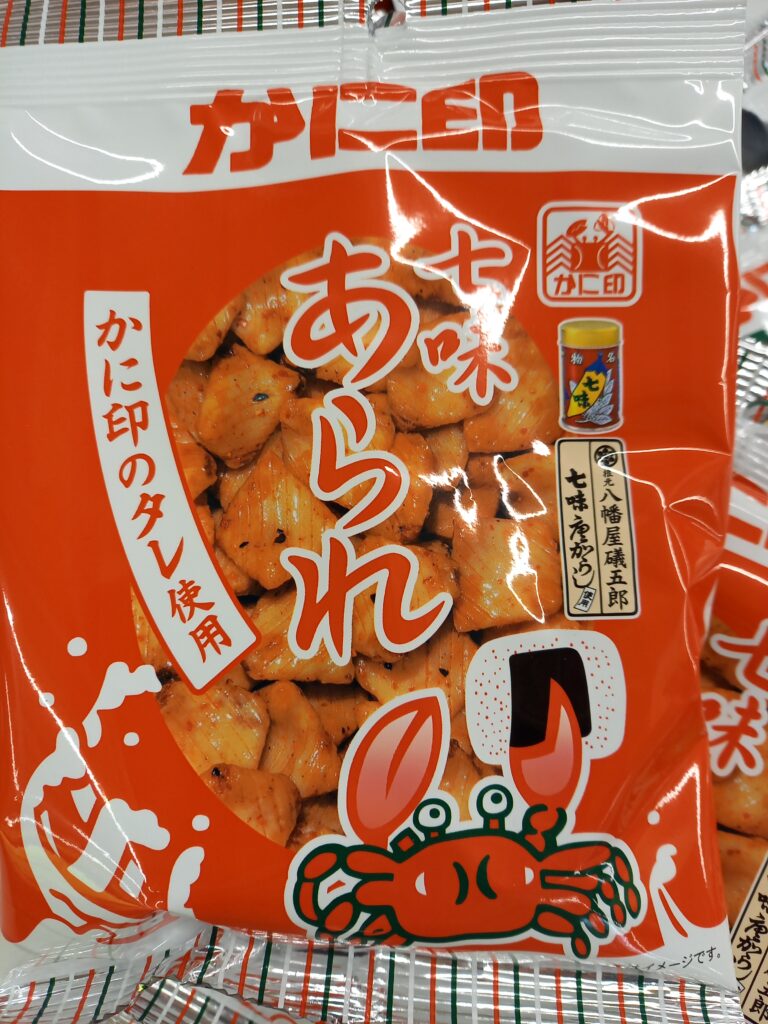 「ノーマルあられ」と「七味あられ」のパッケージの「かに」は