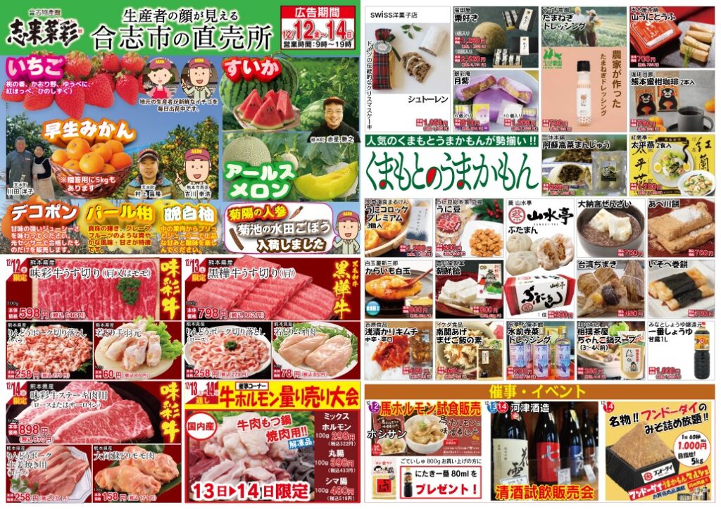 お肉売場では熊本県産の牛・豚・鶏肉を中心に