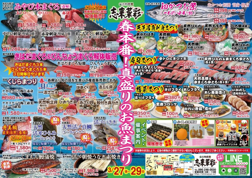 鮮魚売場では「春本番!真盛りのお魚まつり」を開催!!