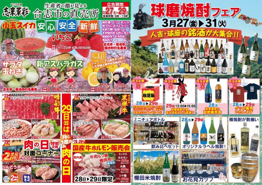 志来菜彩の「球磨焼酎フェア」お見逃しなく!!!!