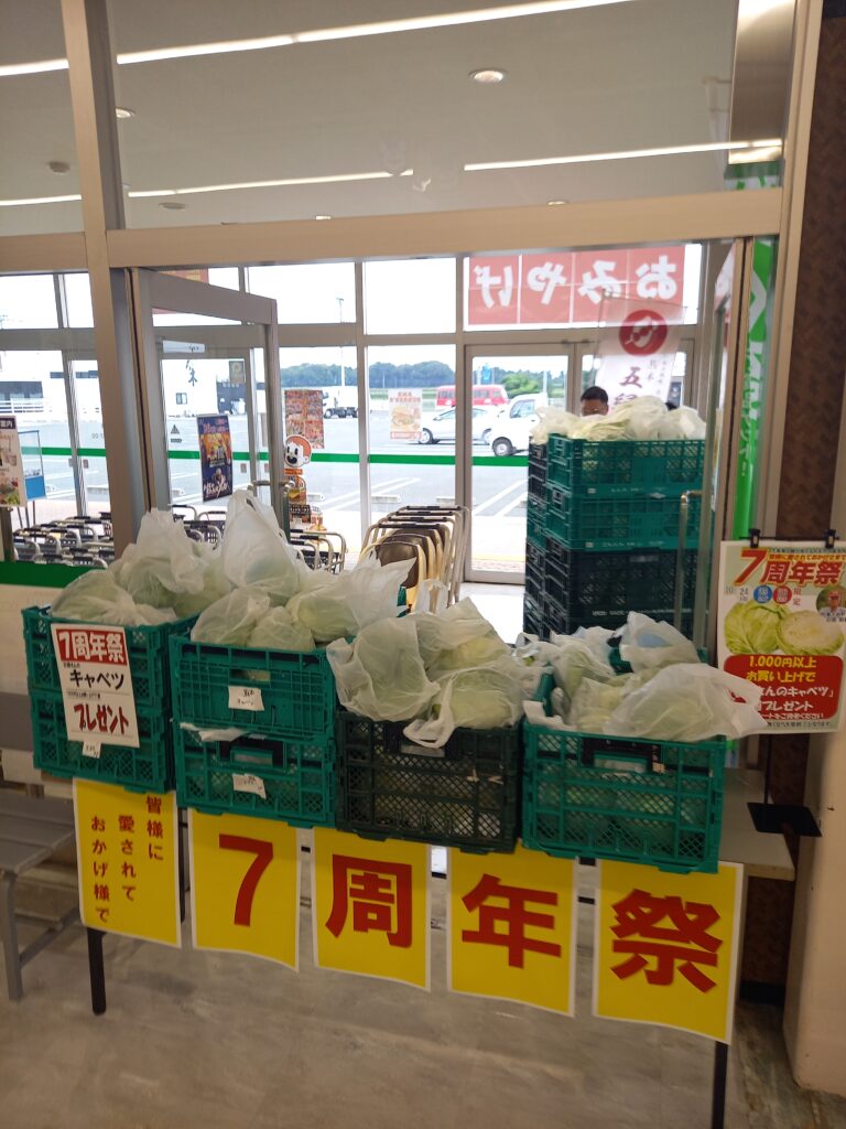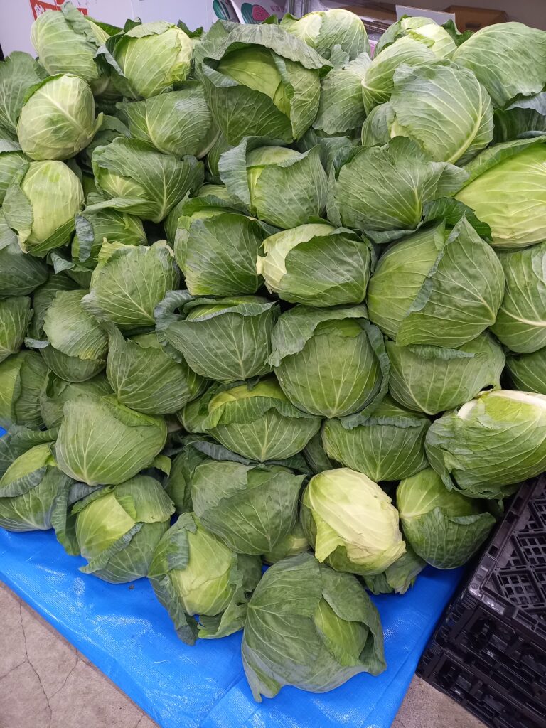 阿蘇波野村から生産者さんのキャベツが山積みで